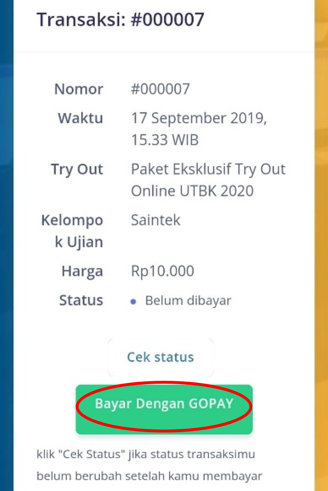 Tunggu beberapa saat, pembayaran kamu akan terkonfirmasi otomatis dan kamu bisa mengerjakan Try Out Online UBTK 2020